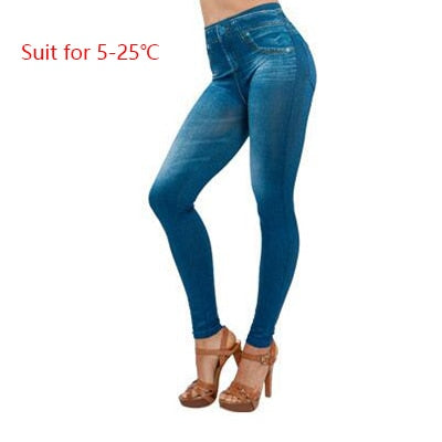 Gtpdpllt S-XXL Sexy Leggings Women Lined Spring Autumn Print Jeans Sportwear Slim Jeggings Two Real Pockets Woman Fitness Pants