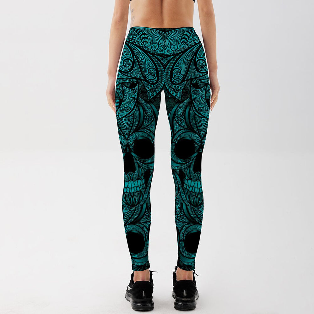 Qickitout Leggings Fitness New Women's Lake Blue Mask Skeleton Evil Leggings Stretch Digital Print Harem Pants For Women Palazzo