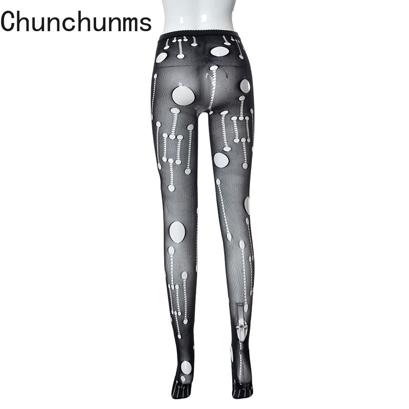 2022 Spring Sexy Hollow Out See Through Stocking Women Black Mesh Hole Tight High Waist Legging Club Streetwear Perspective Pant