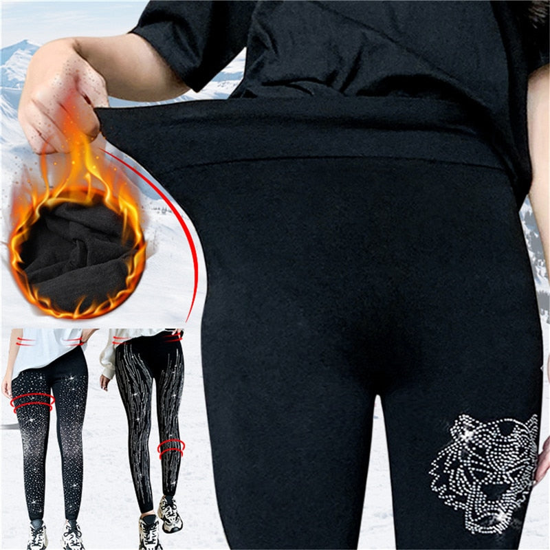 2022 Winter Diamond Leggings Women Sexy Fashion Shiny Tights Female Slim Rhinestone Nylon Pants Women's Warm Tights