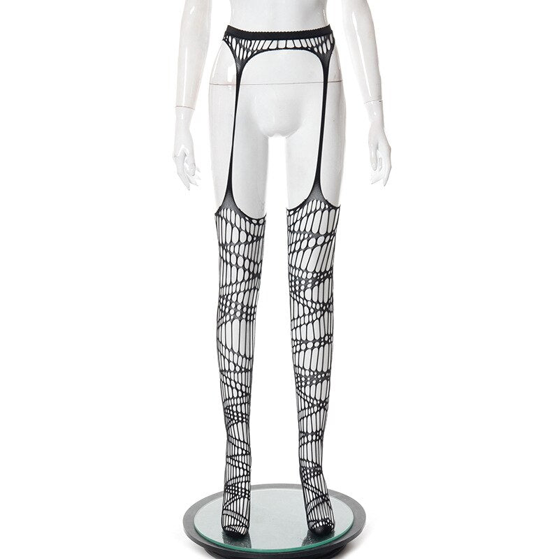 Sexy Party Push Up Leggings Women Clothing Fashion Mesh See Through Nightclub Transparent Pantyhose Hollow Out Ripped Distressed