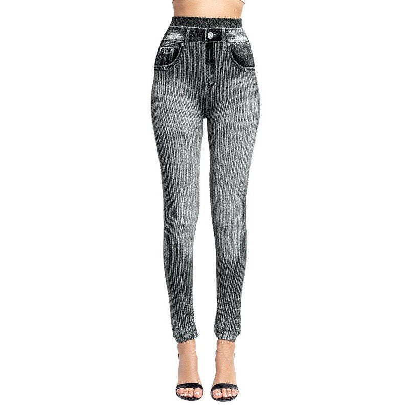 SHUJIN Women High Waist Jeans Leggings Print Ankle Length Pants Super Strety Skinny Imitation Jeans Leggings Dropshipping