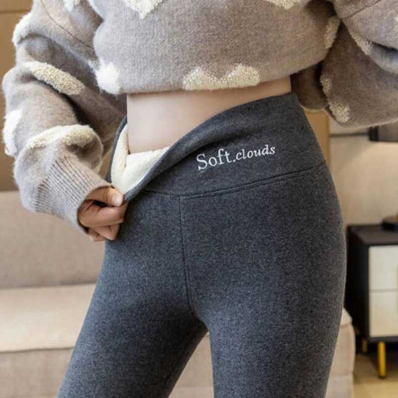 Soft Clouds Fleece Leggings Casual Warm Winter Solid Pants High Waist Plush Thickened Leggings Warm Bottomed Cotton Trousers