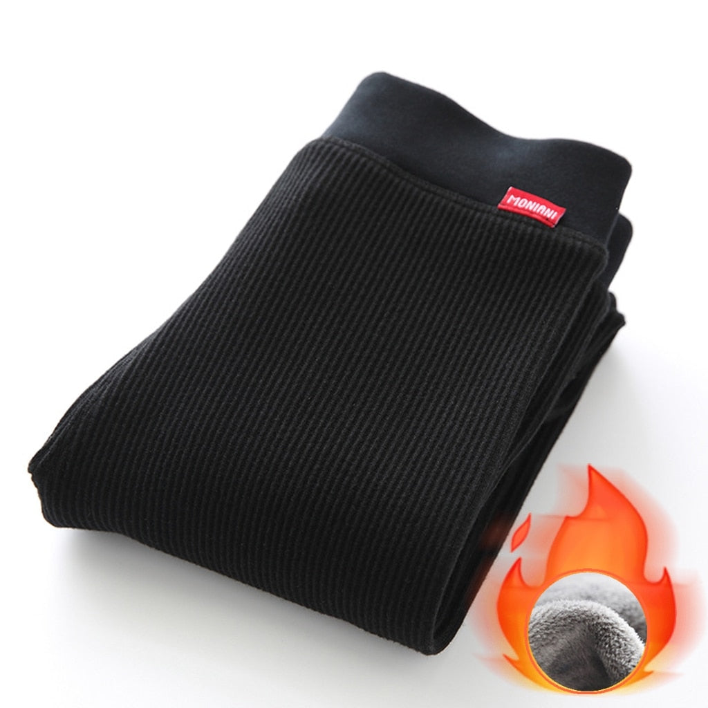 Winter Warm Leggings Women High Waist Ribbed Leggings Thicken Fleece Thermal Pants Casual Slim Solid Colors Elasticity Tights
