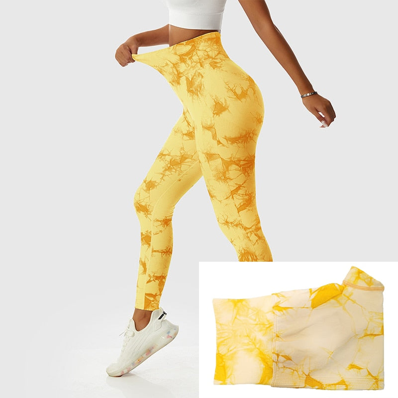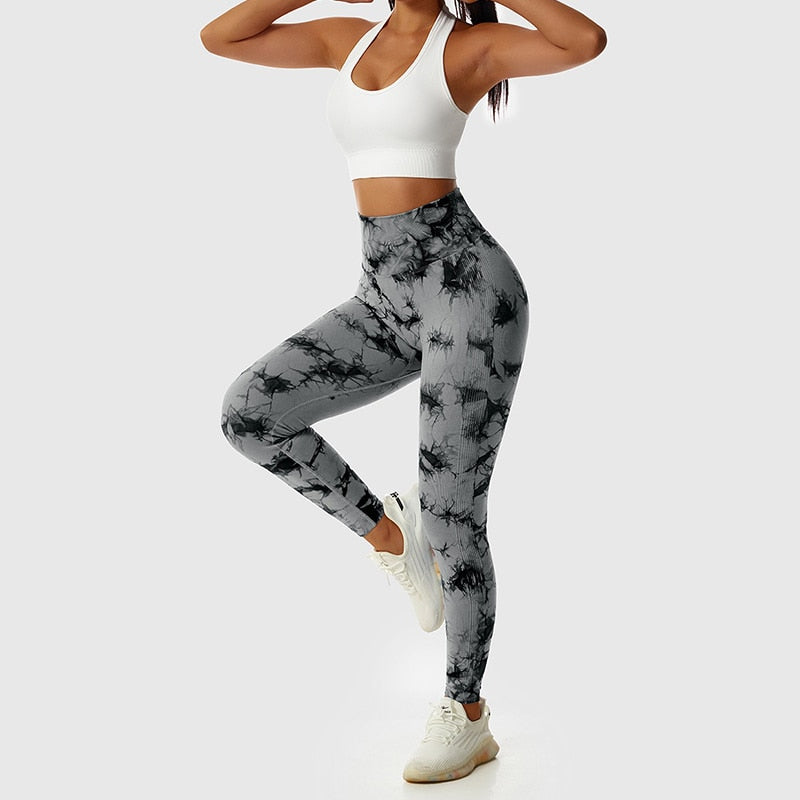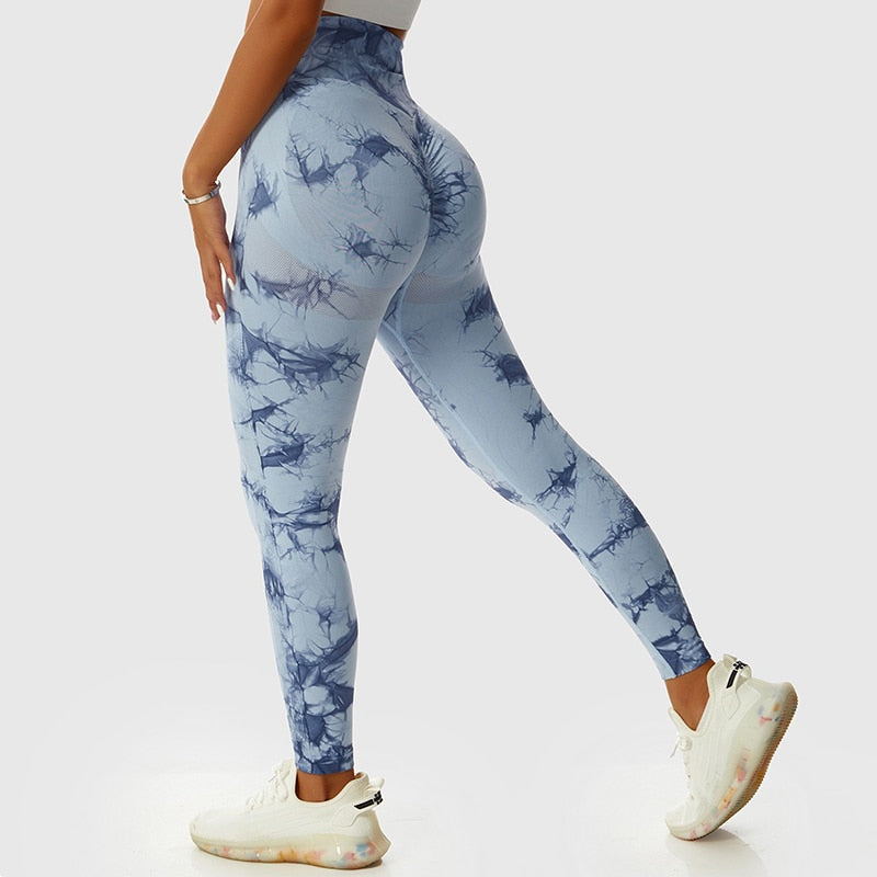 Women Fitness Workout Sport Gym High Waist Seamless Booty Marble Tie Dye Scrunch Butt Pant Yoga Leggings